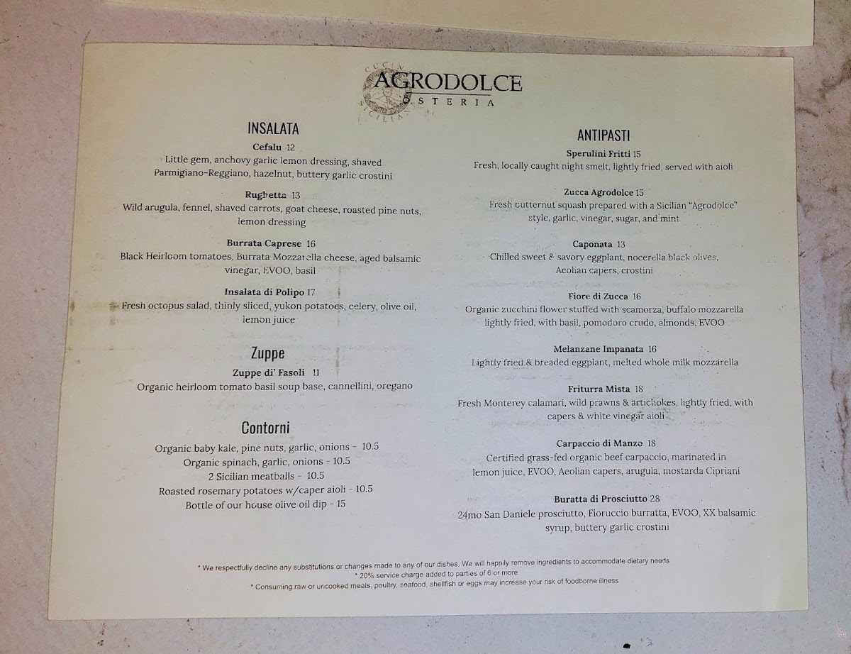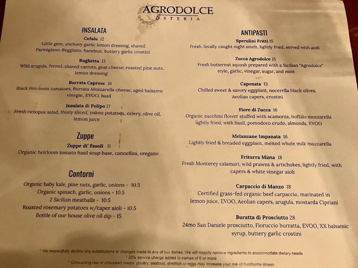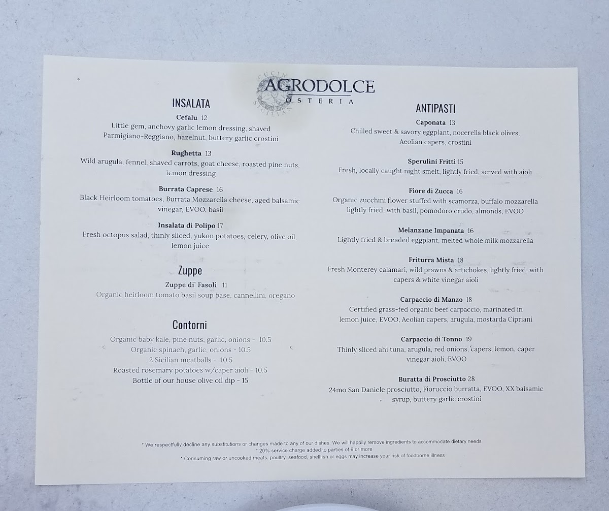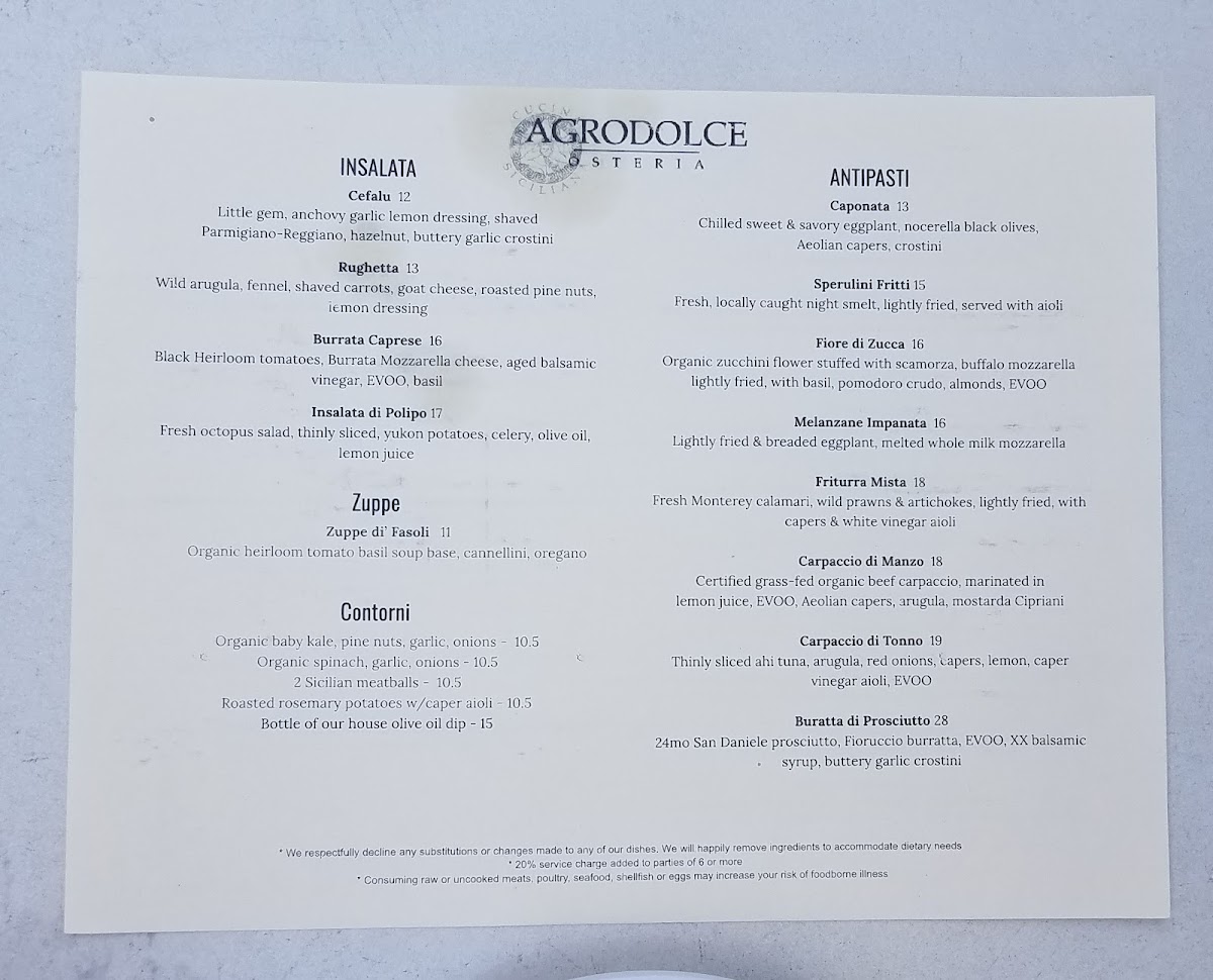 Fresh, thinly sliced big-eyed tuna, marinated in lemon, aeolian capers, arugula, mostarda cipriani, extra virgin olive oil